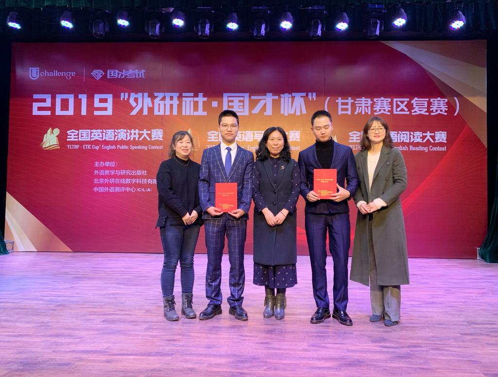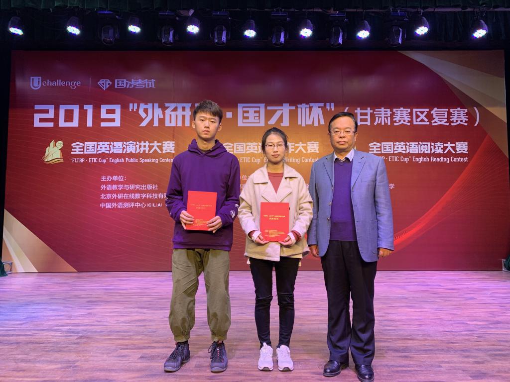 10月26日,2019年“外研社·国才杯”全国英语演讲、写作、阅读大赛甘肃赛区复赛在西北师范大学举行。来自全省18所高校的近120名选手参加了本次大赛。决赛中,我校选手不畏强手,勇于拼搏,以其出色的发挥在三项比赛中均取得了优异的成绩,其中,3人获得甘肃省特等奖,2人获得一等奖,1人获得三等奖。