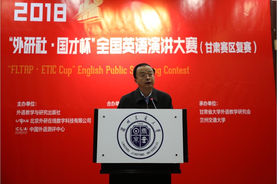 11月3日,由外语教学与研究出版社、北京外研在线数字科技有限公司、中国外语测评中心主办,教育部高等学校大学外语教学指导委员会、教育部高等学校英语专业教学指导分委员会、中国外语与教育研究中心合办,甘肃省大学外语教学研究会、兰州交通大学承办的 2018“外研社国才杯”全国英语演讲、写作、阅读大赛甘肃赛区复赛在我校举行。