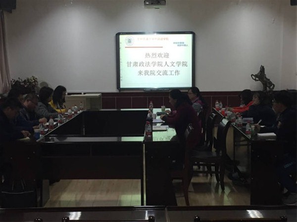 10月11日下午,甘肃政法学院人文学院院长沈天炜、大学外语部主任马彦峰副教授、副主任马生虎副教授、法律英语系副主任孙靖丽副教授、翻译教研室主任李黎副教授一行5人来我院就专业建设、课程设置、硕士点申报、大学英语教学改革、师资队伍建设等方面交流学习。