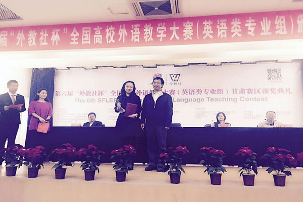 10月9号至11号第六届“外教社杯”全国高校外语教学大赛(英语类专业组)甘肃赛区的复赛、决赛在甘肃农业大学圆满结束。我院教师郑艳老师和田园老师分别获得甘肃赛区英语专业组一等奖和商务英语组二等奖,其中郑艳老师以英语专业组总分第一的成绩,将代表甘肃赛区参加11月在上海举行的全国决赛和总决赛。