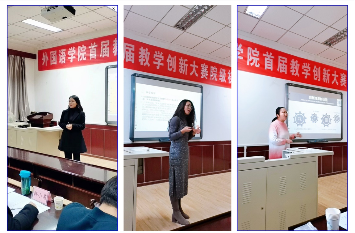 为全面落实新时代全国高等学校本科教育工作会议精神, 坚持立德树人根本任务,推动教学创新,提升教师教学能力和水平,提高课堂教学质量和人才培养质量,根据教务处《关于举办兰州交通大学首届教学创新大赛的通知》精神,12月19日上午,外国语学院举办了2020年首届教学创新大赛院级初赛。本次比赛共有15组教师参加,评委由学校教学创新大赛专家组成员郑丽英老师、韩小茜老师和学院领导、教授委员会部分成员及教师代表组成,部分师生观摩了比赛。