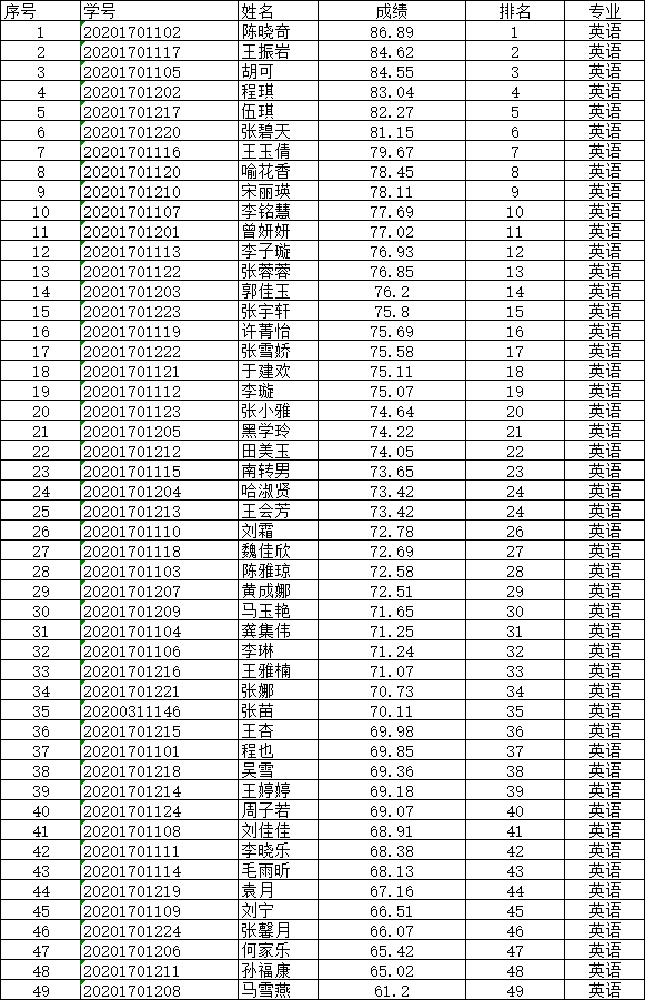 根据2020级本科生转专业工作有关安排,现对2020级本科生第一学年智育成绩进行公示,公示期为2021年7月19日-2021年7月24日。公示期间如有疑义,请及时与我们联系,联系电话:4955719。