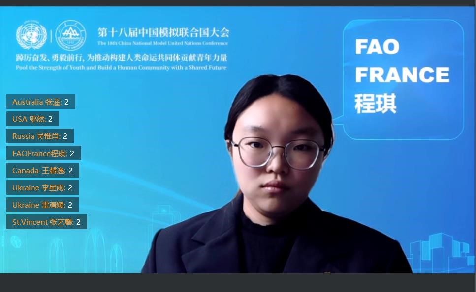 在第十八届中国模拟联合国大会中,我校王昱霖、程琪同学深度参与了以2019新型冠状病毒疫情大流行期间确保粮食安全和营养为议题的联合国粮食及农业组织委员会,参与了议题分析、议题讨论、决议草案写作等多个环节,获得了广泛关注和一致认可。