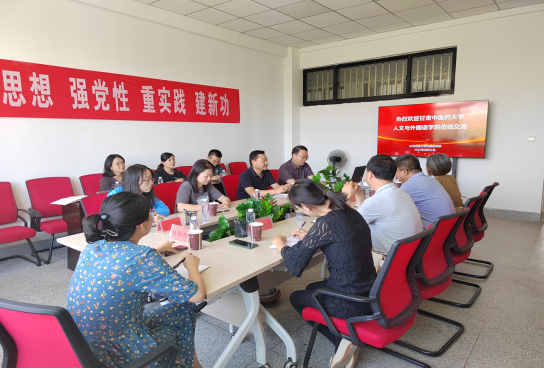 6月21日下午,甘肃中医药大学人文与外国语学院李宏伟院长、姚雅琼副院长、武永胜副院长等一行七人前来我院调研交流大学英语教学改革与创新、翻译硕士点申报与建设等工作。学院王电建院长、孔令会副院长、教务办主任、研究生办主任、大学英语教研室主任等参加了座谈会。座谈会由孔令会副院长主持。