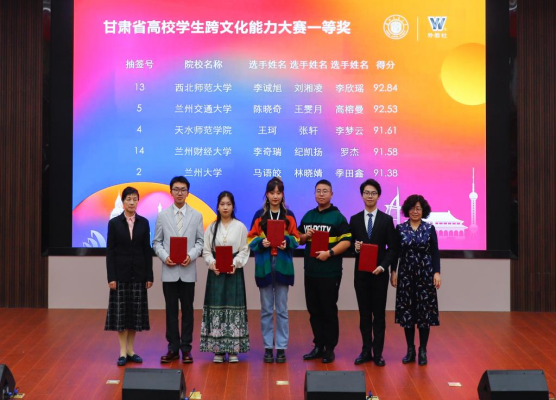 我校由陈晓奇(外国语学院)、王雯月(文学院)、高榕曼(文学院)组成的参赛团队在外国语学院领导及教师胡淑兰、刘虹、强臻的悉心指导下,荣获大赛一等奖,并将代表甘肃省参加全国高校学生跨文化能力大赛。