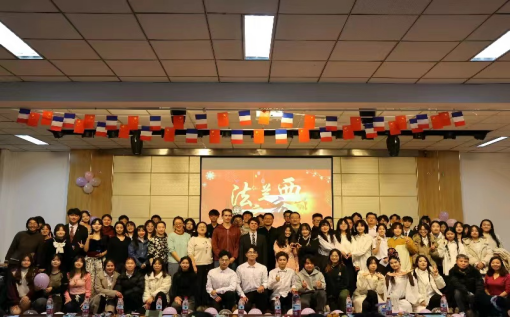 12月8日晚7:30,外国语学院法语系“浪漫法兰西”之“青春·二十年”暨法语系成立20周年晚会在外语学院语言实训室举办。外国语学院院长王电建、副院长孔令会、学院团委书记杨清秀、西语系主任张清清、西语外教Diego、法语外教Thibault及研工办和法语系全体教师一同观看了本场晚会。