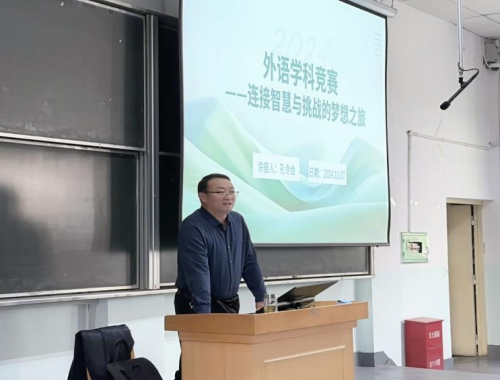 此次宣讲活动中,外国语学院副院长孔令会老师以“外语学科竞赛——连接智慧与挑战的梦想之旅”为题,面向外国语学院大一、大二本科生和研一、研二研究生以及全校英语能力突出的本科生和研究生约300人宣讲双创教育,内容包括双创教育的重要性、双创教育的主要形式、外语学科竞赛情况、大创项目申报与结项、本科生双创学分认定、研究生毕业双创教育要求以及如何备赛等,会后就学生关心的问题进行了答疑和沟通。