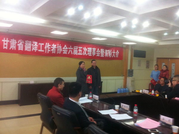 甘肃省翻译工作者协会六届五次理事会议暨表彰大会于12月26日下午14:00-17:30在兰州城市学院综合楼举行,这也是省译协自恢复以来第一次举行表彰奖励大会,外国语学院院长余莉教授被评为先进个人。