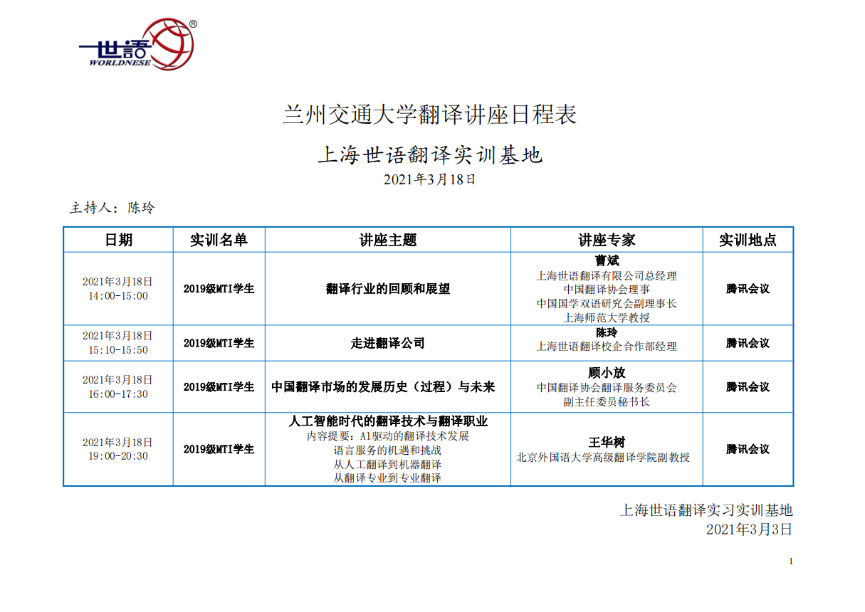 2021年3月18日,外国语学院2019级全体MTI研究生在8-C-505参加了线上翻译实训。本次实训邀请四位国内翻译领域知名专家及行业内领头企业代表,分别就翻译行业动态、翻译市场现状、翻译公司业务流程、翻译技术发展等方面,为我院MTI研究生进行了系统深入介绍。