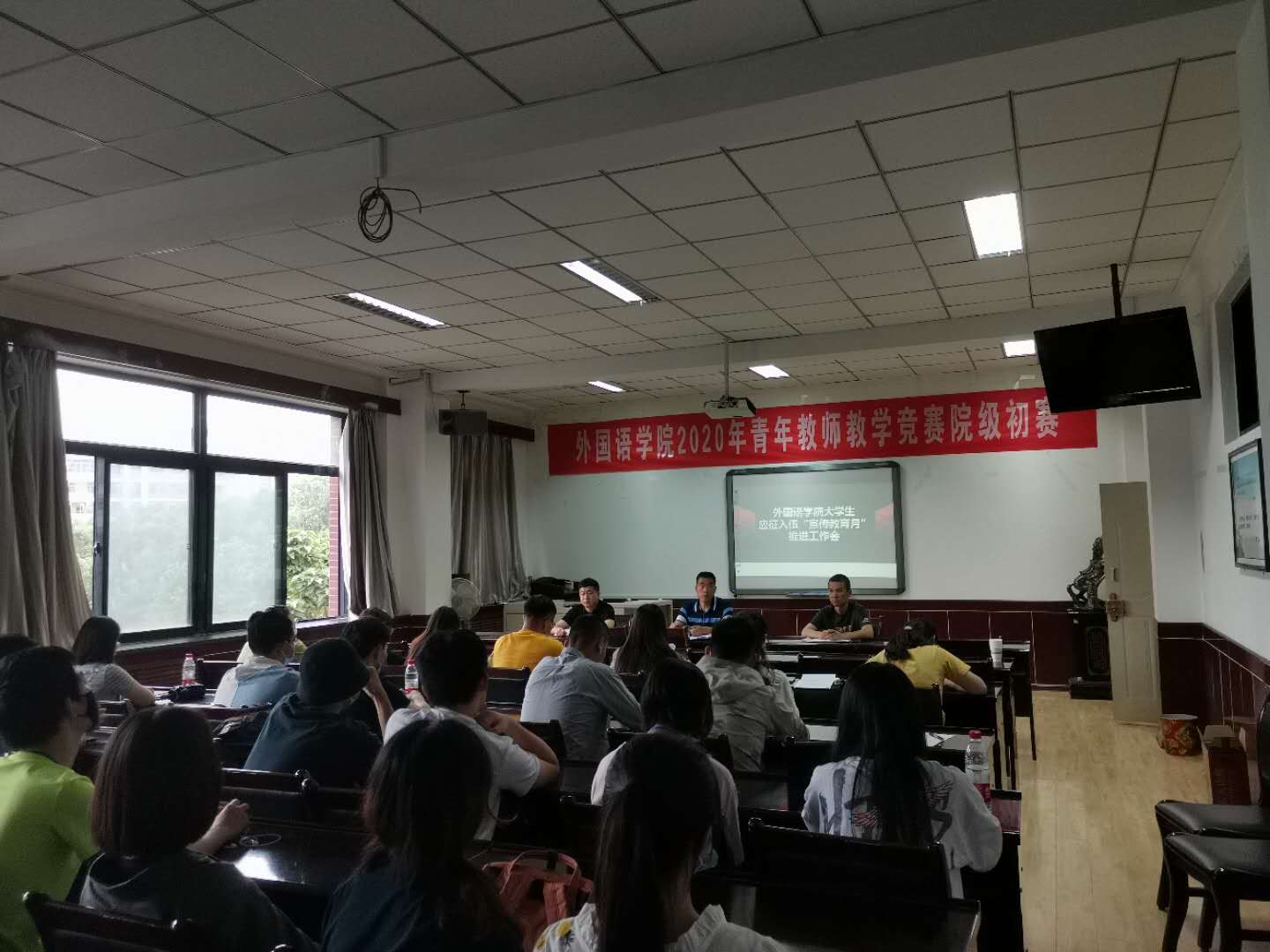 为落实学校大学生应征入伍会议精神、鼓励大学生应征入伍服役、提高兵员质量、推进国防和军队现代化建设,根据学校6月19日会议精神,外国语学院于6月24日下午在学院学术厅召开了“外国语学院2020年征兵工作动员大会”。学生工作人员,各班班长、团支书,各协会及团学干部参加了动员会,王一君副院长主持会议。