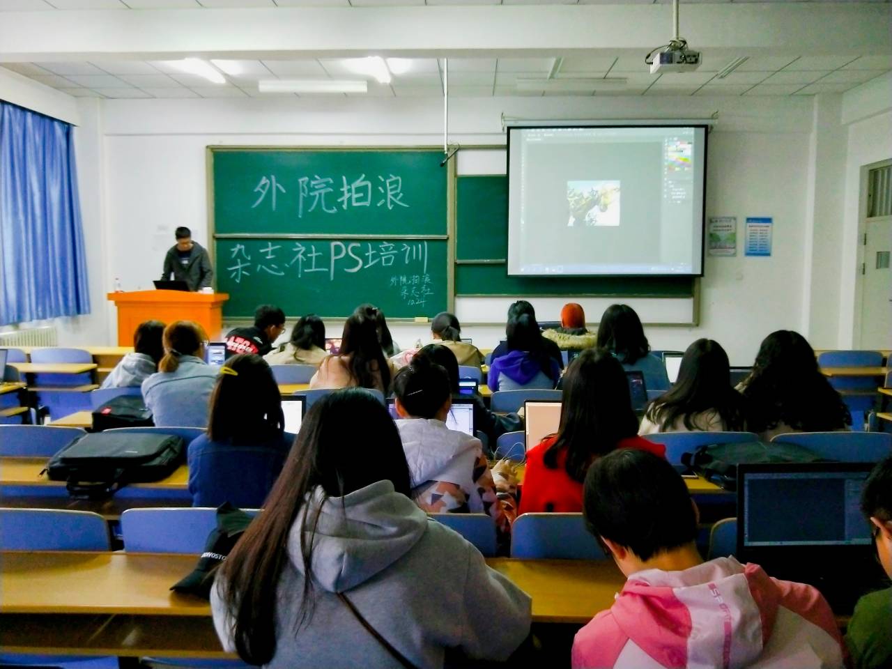 为提高广大同学的网络技术与技能,我院拍浪杂志社于10月24日下午成功举办了PS技术培训活动。
