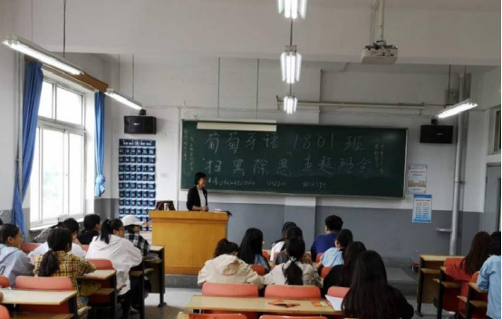 2019年5月31日上午十点,葡语1801班班主任代老师和联系领导图书馆樊怡老师在4教320教室为本班学生召开了以“扫黑除恶 远离校园贷”为主题的班会。