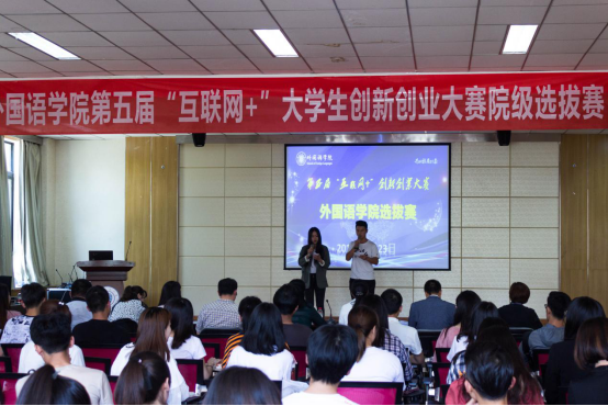 按照学校《关于举办第五届中国“互联网+”大学生创新创业大赛校内选拔赛的通知》要求,为激发广大师生创新创业意识,提升文科类学生创新创业能力,达到以赛促学、以赛促教、以赛促创的大赛目的,外国语学院于5月23日下午,在学院实训室开展第五届中国“互联网+”创新创业大赛院级选拔赛。学院主要领导、创新创业学院实训管理办公室李敏娟主任和学院相关老师共7人应邀担任大赛评委。