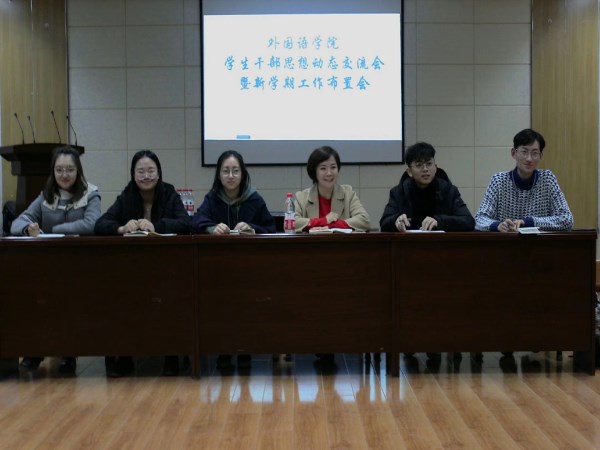 为进一步加强学生干部管理,了解学生新学期思想动态,营造优良学风,11月13日晚19:00,外语学院团委召开学生干部思想动态交流会。外国语学院学生会全体成员、各协会负责人、团支部书记、班长共计70余名学生干部参加了本次会议。