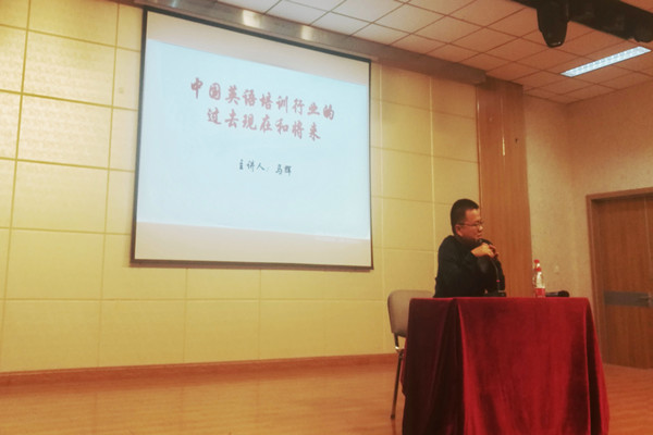 在简单介绍了个人经历之后,马辉校友就自己目前从事的职业和在座的学弟学妹们进行了分享,就中国教育行业、尤其是英语培训行业的相关情况做了详细的讲解。