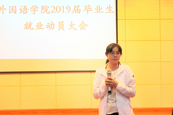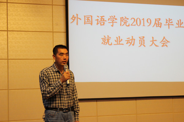 9月11日下午,外国语学院在学生实训中心召开了2019届毕业生就业动员大会。学院党委书记柏桦、学工办老师、毕业班班主任及2019届级全体毕业生参加了此次大会。