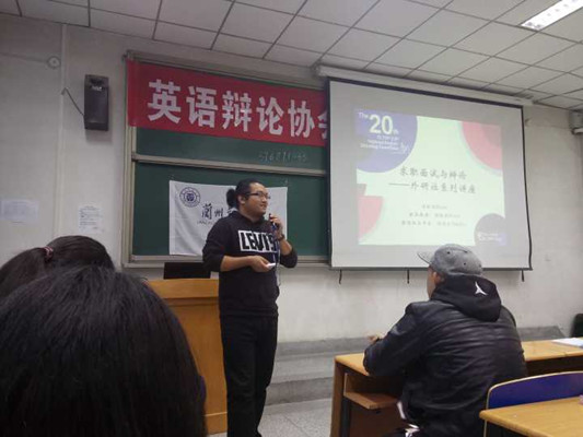 10月28日下午8教B座1508教室,由兰州交通大学外国语学院邀请的,中国辩论公开赛总裁判长,哥伦比亚访问学者,TESOL高级认证教师——谢绍东老师为大一大二学生开展了名为《求职面试与辩论》的讲座。