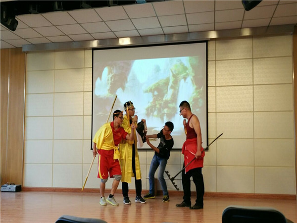 在柏桦书记的组织以及英语系各位老师的指导下,英语系14级全体同学参加了本次演出。他们凭着自己的丰富的想象力和创造力为我们带来了一场精彩纷呈的演出。参演话剧不仅是精彩的表演,还有语言的魅力和文化的传承。现场气氛热烈,掌声不断。最终,话剧Three Times Beating the White Bone Demon凭借精准的发音、形象的表演和良好的舞台效果荣获本次话剧汇报演出一等奖。观看本次演出的不仅有我校同学,还有来自各国参加暑期交流项目的交流生。暑期交流项目的带队老师Tiffany对本次演出做了点评,给予了很高的评价。