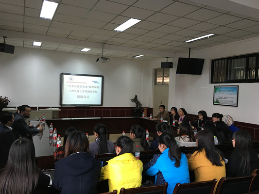 11月18日下午,“安泊尔慈善基金”兰州交通大学外国语学院助学项目捐助仪式在外国语学院学术厅举行。此次捐助的助学金共3万元,用于资助我院20名品学兼优的贫困大学生。安泊尔投资有限公司董事长张全先生,外国语学院院长余莉教授,副院长沈渭菊教授,副院长陈洁教授出席了捐赠仪式,院学工办主任王一君、团委书记赵洁、辅导员马丽芳老师以及受资助学生20余人参加了本次活动。