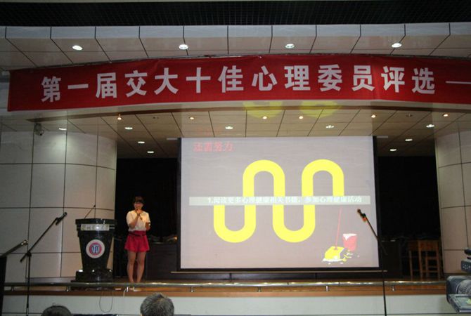 此次比赛分为初赛,复赛与决赛,初赛由各学院(部)组织选拔,复赛与决赛由学生处大学生心理健康教育服务中心主办。最终,来自15个学院的18名心理委员挺进决赛。决赛部分由心理小品展示,心理委员工作风采展示以及知识问答三个环节构成,整个比赛过程精彩纷呈,现场各院啦啦队的欢呼喝彩声此起彼伏,掌声不断。经过激烈的角逐,英语1301班时乐同学以其丰富的知识储备、稳健的台风以及富有亲和力和感染力的语言表达赢得了评委和在场观众的认可,最终摘得兰州交通大学首届“十佳心理委员”评选活动桂冠。
