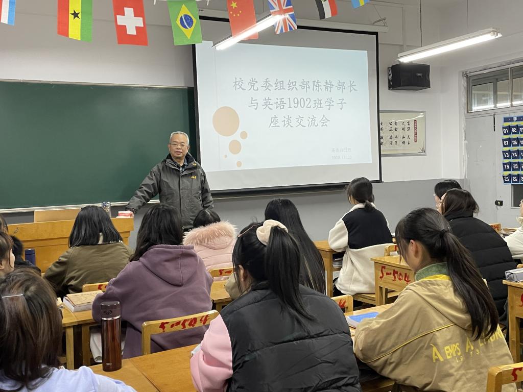 按照学校“关于开展2020-2021学年领导干部深入基层联系学生工作的通知”要求,结合外语学院2020-2021学年领导干部深入班级工作安排,11月19日晚,校党委组织部部长陈静来到英语1902班教室,以“新文科与外语学科核心素养”为主题给同学们做了一场讲座。