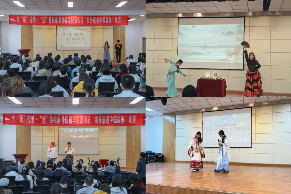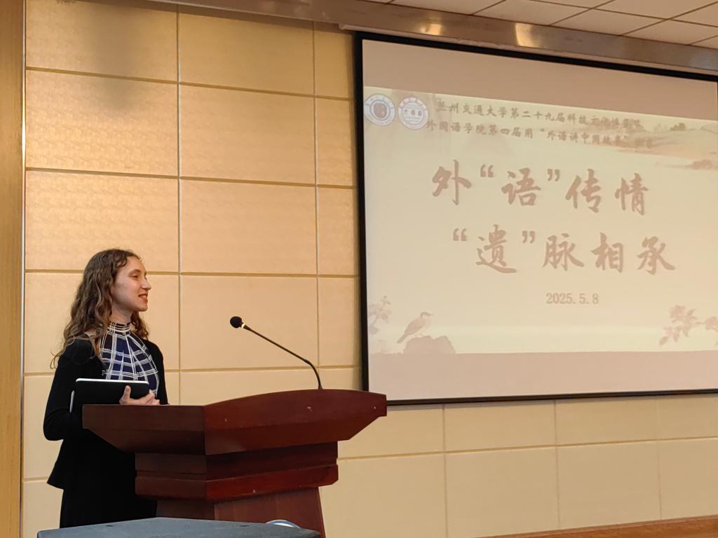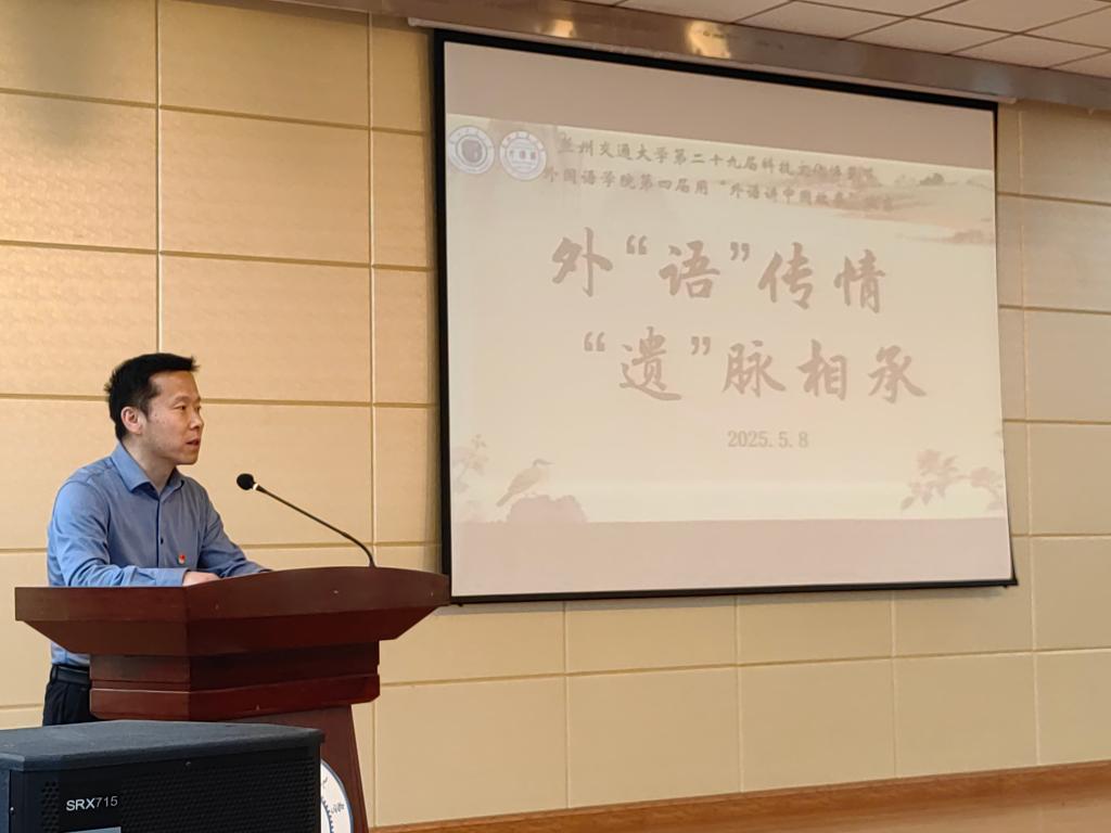 为弘扬中华优秀传统文化,展现外语学子的跨文化传播能力,5 月 8 日,兰州交通大学第二十九届科技文化博览节外国语学院第四届 “用外语讲中国故事” 比赛在八教 D 座 219 实训室隆重举行。本次比赛以 “外‘语’传情,‘遗’脉相承”为主题,大学生心理中心负责人、学院班子成员、各系(教研室)教师代表、外籍教师代表共150 余人参加了活动。11 支参赛团队用英语、法语、西班牙语、葡萄牙语、阿拉伯语五种语言,为观众带来一场跨越时空的文化盛宴。