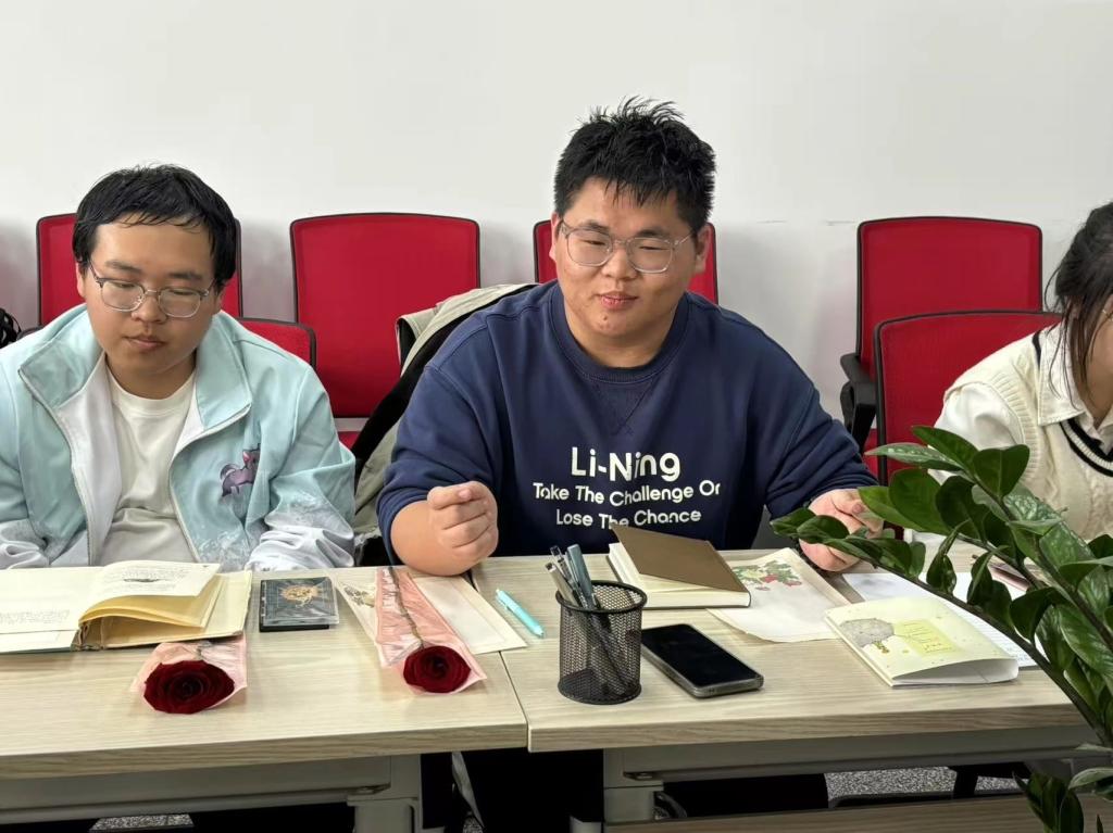 在交流讨论环节,同学们热情高涨,积极分享自己的所感所想。值得一提的是,作为外国语学院的学生,大家还结合法语对《小王子》中的关键词义进行了深入理解。有人提到书中的经典语句“On ne voit bien qu’avec le cœur. L’essentiel est invisible pour les yeux.”,也就是“只有用心才能看清楚,本质的东西用眼睛是看不见的”。大家围绕“essentiel”(本质)一词展开探讨,认为在小王子的世界里,无论是他对玫瑰的感情,还是与狐狸建立的联系,都不能仅仅依靠眼睛去看,而要用心去感受。就像小王子最终明白了,玫瑰的骄傲与脆弱背后,是她深深的爱意 ,这是眼睛无法直接看到的本质。