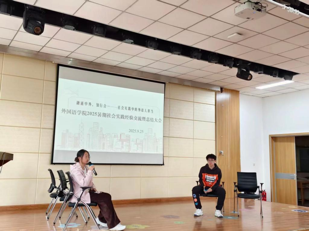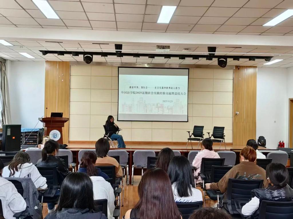在认真聆听了同学们的精彩分享后,学院团委书记杨清秀老师对本次分享会进行了总结发言,对同学们在暑期社会实践中取得的丰硕成果和展现出的卓越风采表示热烈的祝贺。杨老师提到:从支教一线到文化田野,从家乡热土到国际赛场,我们的学生党员冲锋在前,骨干作用凸显,带领着广大团员青年,真正践行了‘融通中外,知行合一’的实践精神,生动诠释了新时代外语人的使命担当。最后,杨老师向全体同学提出殷切期望,希望大家继续保持这份初心与热忱,将实践中的感悟转化为刻苦学习的动力,努力锤炼成为具有家国情怀和专业本领的复合型人才。