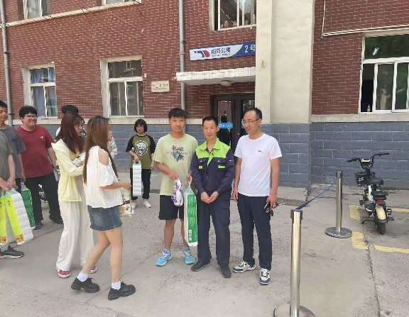 本次活动由外国语学院辅导员老师带队,宿舍管理委员会成员和部分同学代表参加,分别与南苑2号楼及北苑2号楼的宿舍管理人员及保洁人员亲切交流,并送上水壶、抽纸、洗衣液等日常用品作为小纪念品,向各位宿舍管理老师表示诚挚的感谢和衷心的祝福。