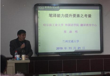 11月21日、22日,我院特邀哈尔滨工业大学外国语学院副教授、翻译教育中心主任郑淑明老师在第八教学楼D座411学术厅分别举办了“笔译能力提升要素之考量”、“翻译教学能力提升要素之考量”、“MTI翻译实践报告质量提升要素之考量”等三场讲座,学院多名任课教师及研究生共计70余人参加。