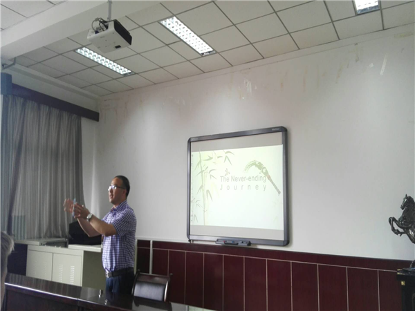 2018年5月10日下午,外国语学院第二场学术讲坛在院学术厅举行。主讲人为我院教师王安民博士,题目为The Never-ending Journey。讲坛主要基于王安民博士的博士论文Pragmatic Information for CFL Beginners in an Experimental E-C Learners' Dictionary。王安民博士指出,将语用学的基本理念融入词典编纂,可以更好地帮助初学者学习汉语表达。该论文成果的修改版现已由科学出版社出版。本次学术讲坛由外国语学院院长余莉主持,全体教师参加了论坛。