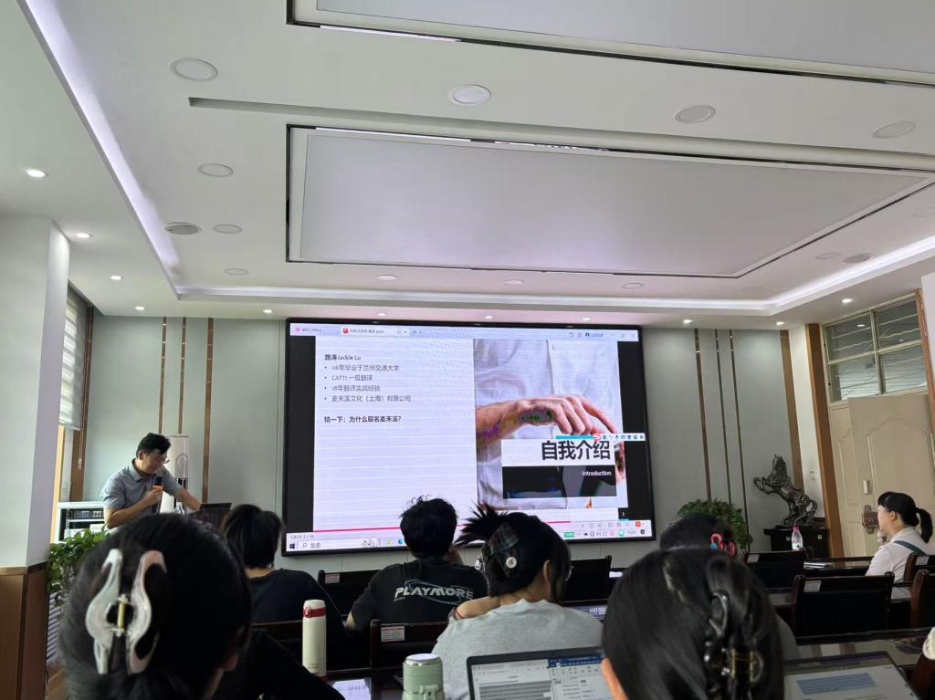 在专家与师生交流环节,一级翻译路涛以“向阳而生:与AI同行”为主题展开分享。他指出译文可读性不足、文化传递性待提升等当前翻译实践中存在的突出问题,并结合具体翻译项目案例,系统讲解了如何高效协调、利用多方资源解决翻译问题,强调要通过实践不断夯实翻译能力、拓展知识边界。