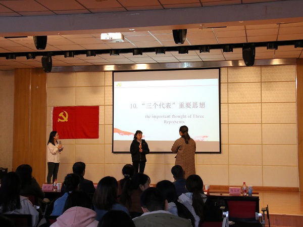 党校长与各位党员重温入党誓词拉开了活动的序幕。随后,研究生党支部书记汇报了支部工作, “不忘初心,牢记使命”主题教育的学习情况,以及工作感悟和对将来工作的思考;之后,两名同学分别讲述了时代楷模钟扬和申纪兰的事迹,目的是使全体党员在感悟先进楷模优秀品质中提升境界。此外,支部还组织了 “语译年华”和“竞赛答题”等活动,支部党员踊跃参与,将活动推向高潮,进一步提升了党员们对“不忘初心、牢记使命”主题教育意义的认识。