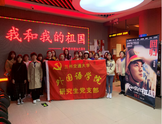 10月9日,为了庆祝中华人民共和国成立70周年,弘扬爱国主义精神,开展“不忘初心,牢记使命”主题教育,兰州交通大学外国语学院研究生党支部集体观看爱国主义教育影片《我和我的祖国》并召开座谈会,交流观影体会。