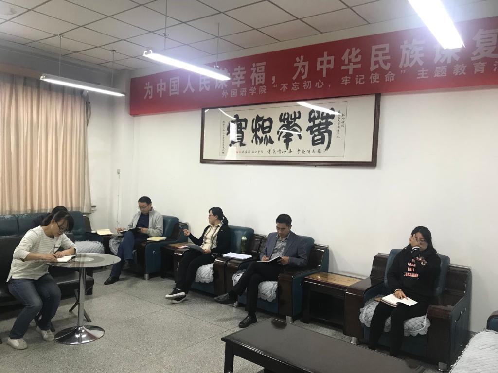 10月8日下午,外国语学院党委在8教D座 417召开了“不忘初心 牢记使命” 主题教育工作推进会。学院党委委员参加会议,会议由学院党委书记柏桦主持。
