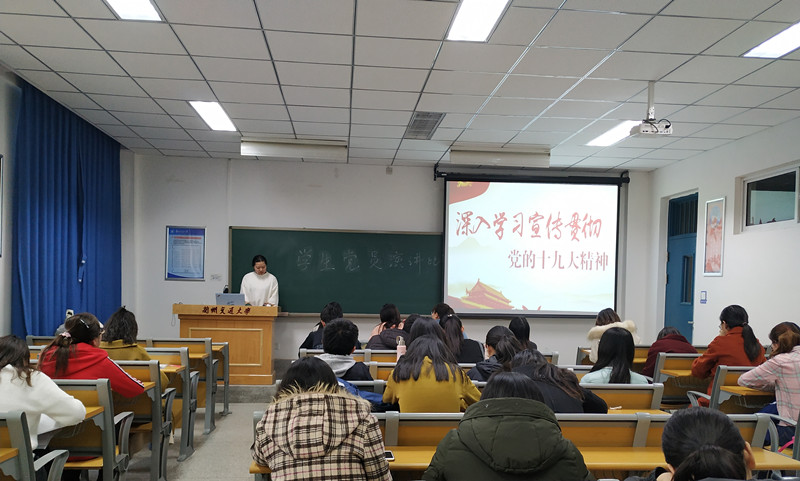 为深入学习贯彻党的十九大精神,大力弘扬社会主义核心价值观,自觉做中国特色社会主义的坚定信仰者,2018年11月29日下午4:30,外国语学院西阿葡语党支部在二教405举办“学习十九大精神”演讲比赛。