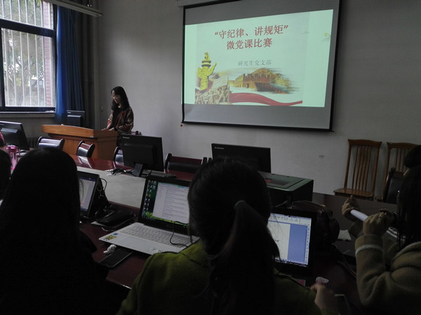 2018年10月25日下午,外国语学院研究生党支部举办了“守纪律、讲规矩”演讲比赛,支部全体党员参加了此次比赛。