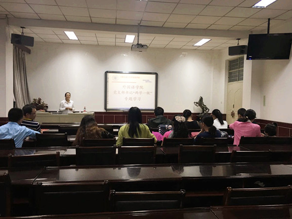 6月6日晚上19:30,外语学院党委在院学术厅组织开展了“两学一做”专题学习活动,各党支部书记及支委参加了学习活动,活动由学院党委书记柏桦主持。