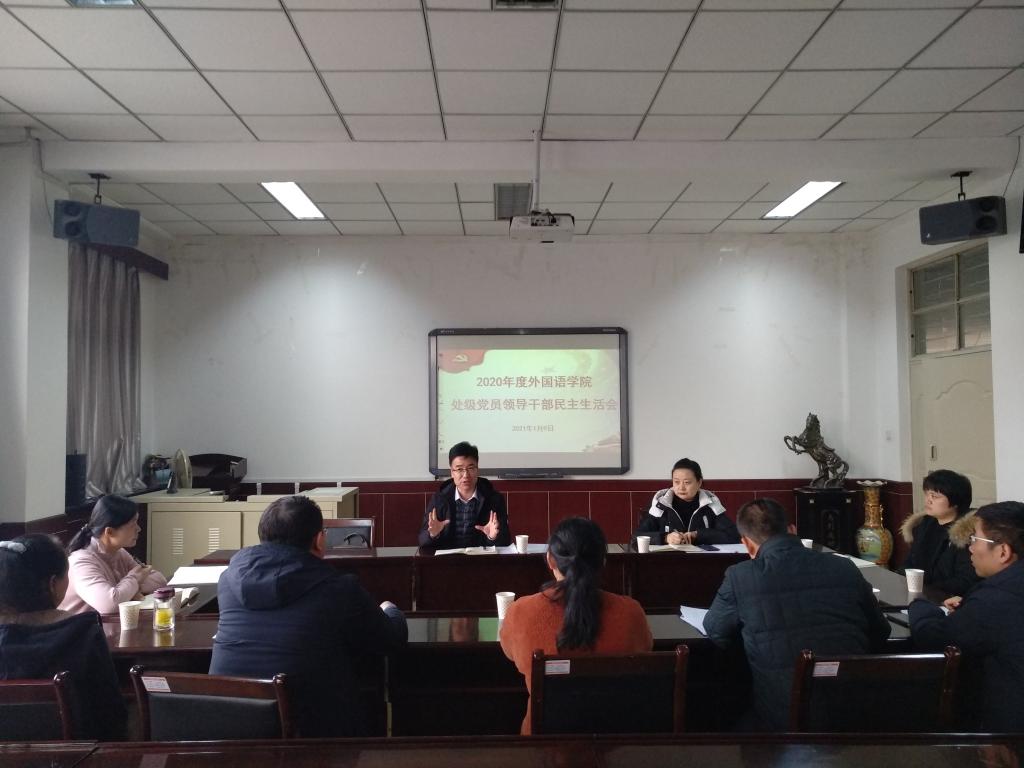 根据校党委《关于认真开好2020年度处级党员领导干部民主生活会的通知》要求,1月9日下午,外国语学院召开了2020年度领导班子民主生活会。学院领导班子全体成员参会,学校第十四督导组成员到会指导。