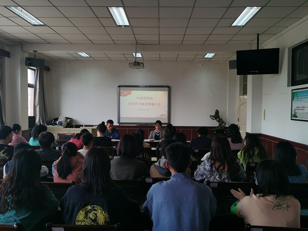 为全面贯彻落实习近平总书记在党史学习教育动员大会上的重要讲话精神及《兰州交通大学开展党史学习教育实施方案》要求,4月12日,外国语学院党委组织召开了党史学习教育部署会议。参加会议的有党委委员、全体党支部支委成员、团支部书记,会议由党委书记柏桦主持。