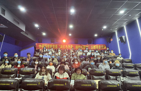 为继续深入开展党史学习教育,进一步增强党员的爱党爱国情怀,10月10日下午,外国语学院党委组织学生党支部开展了“观红色电影、扬时代精神”主题党日活动,西阿葡党支部和研究生党支部70名党员集体观看了红色影片《长津湖》。