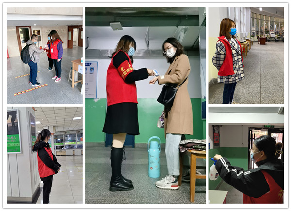 学生党员们坚守在公寓、在食堂,她们戴好口罩,备好消毒液,做好个人防护,认真测量每一位进出人员的体温、检查出入证,规劝同学们正确佩戴口罩、严守“一米线”,文明取餐。法语党支部张雨娟说:“我们个体的力量很弱小,但众多弱小的力量汇成一股劲,人人服从安排,听从管理,积极配合,我们的力量就会变得强大,能更快取得抗疫胜利,作为党员,我们应当以身示范。”