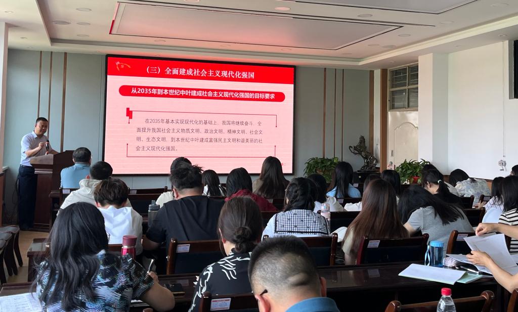 按照学校学习贯彻习近平新时代中国特色社会主义思想主题教育工作安排,外国语学院党委于2023年6月8日下午举办主题教育专题辅导报告会。会上,学校马克思主义学院徐占元副教授以“习近平新时代中国特色社会主义思想的实践自觉”为题,为学院师生党员做专题辅导报告。报告会由学院党委书记姚斌主持。外国语学院师生党员100余人参加此次辅导报告。