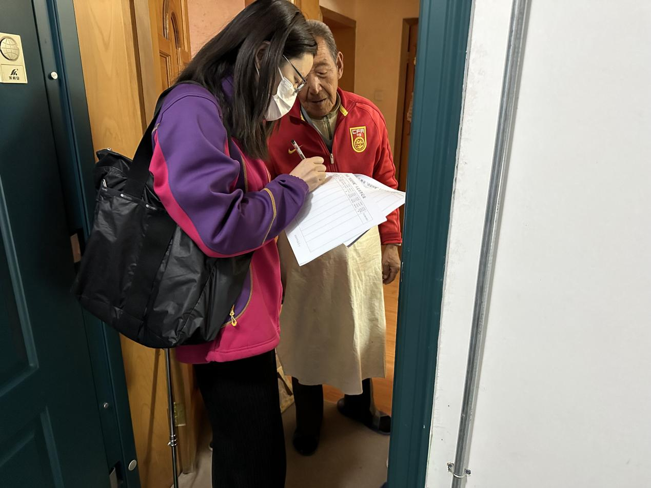 “我们是兰州交通大学外国语学院的教工党员和学生志愿者,协助万里社区开展访民问暖活动,想了解下今年您家里暖气热不热,有没有什么问题需要我们协助解决?”外国语学院党委副书记杨晖每进到一户居民家中,都会详细询问住户家中供暖情况,仔细查看居民家中的调节阀门和供热水管是否存在问题,并主动了解居民提出的供暖诉求。“您家暖气不太热,您看地暖进水管道是烫的,但回水管是凉的,是地暖回水阀门没有打开,我帮您打开,如果后期还不热,要考虑是不是地暖设备有故障,导致循环不畅的问题。”学院教工第三党支部书记黄天宇认真检查独居老人家中暖气,每进到一户,会耐心地询问近期的供暖时长和室内温度,是否有暖气不热和间歇供暖的情况。学院教工党员和学生志愿者针对万里社区所辖1000余户家中供热情况进行了摸排,在走访过程中对部分住户反应的问题及时记录,并将情况向社区予以反馈。