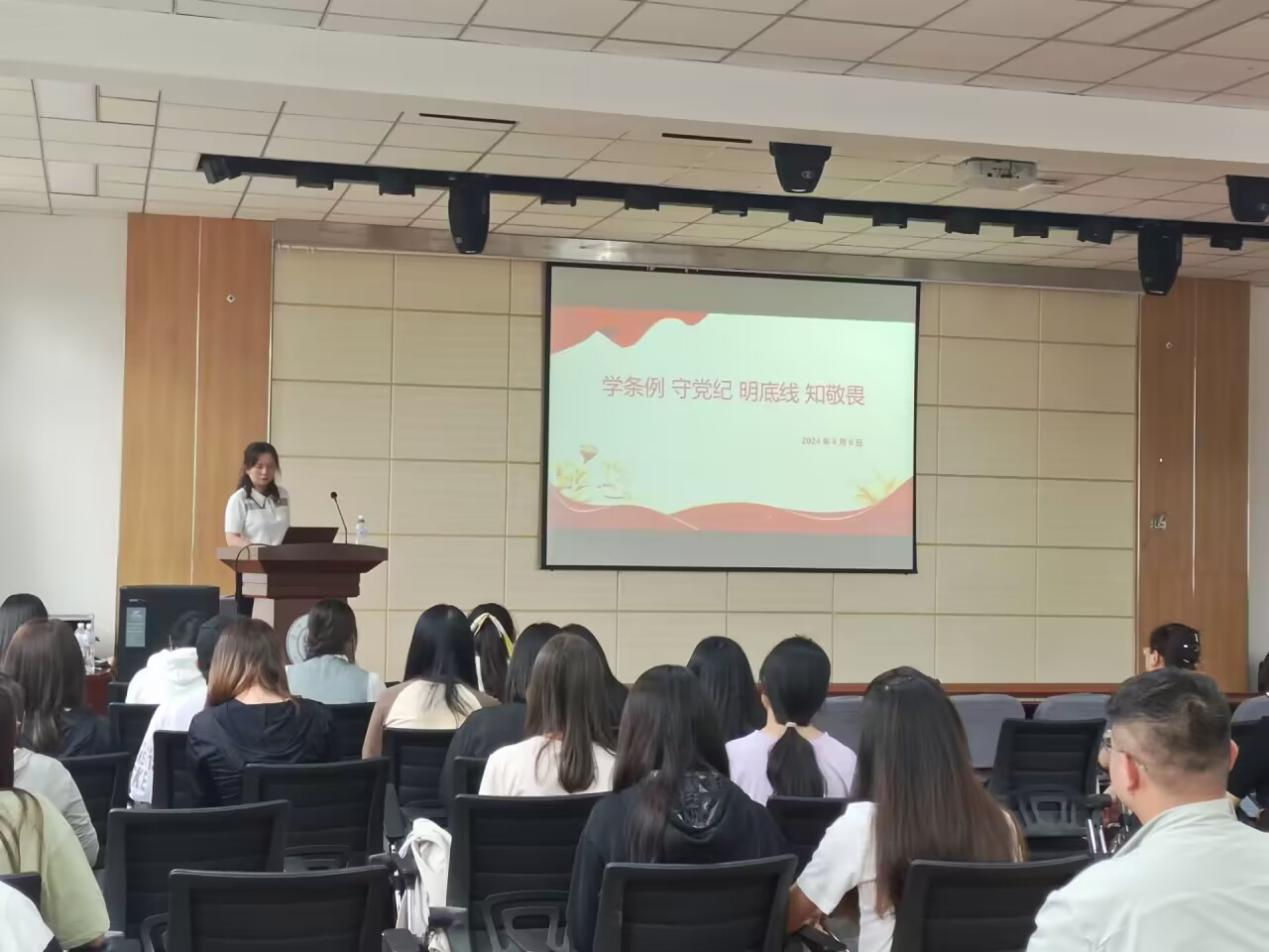 活动开始,教工第一党支部书记许广洁老师面向与会党员讲了题为《学条例 守党纪 明底线 知敬畏》的专题党课。许老师从《中国共产党纪律处分条例》的“修订情况”和“主旨要义”两个方面进行了深入讲解,让大家切实领会了“治国必先治党,治党务必从严,从严必依法度”的深刻内涵。