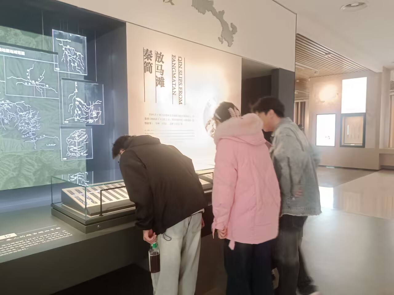 活动中,馆方工作人员详细介绍了博物馆的基本情况与珍贵文物。这些文物犹如时光的使者,不仅记录了古代丝绸之路沿线人民的生活轨迹与社会变迁,更展现出中国古代文明的璀璨成就。在专业讲解员的引领下,支部党员依次参观了“简牍时代”“简述丝路”等多个主题展厅。“边塞之家”展厅以五封信为脉络,通过丰富的细节生动还原了汉塞边关将士的日常生活;“简述丝路”展厅则清晰地呈现出丝绸之路的历史原貌,借助简牍和文物展示了丝路的路线、沿途塞防以及往来人员。