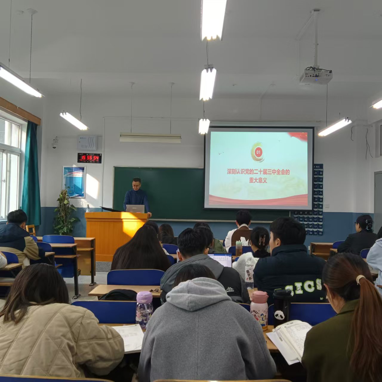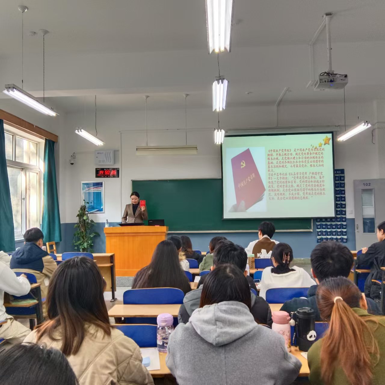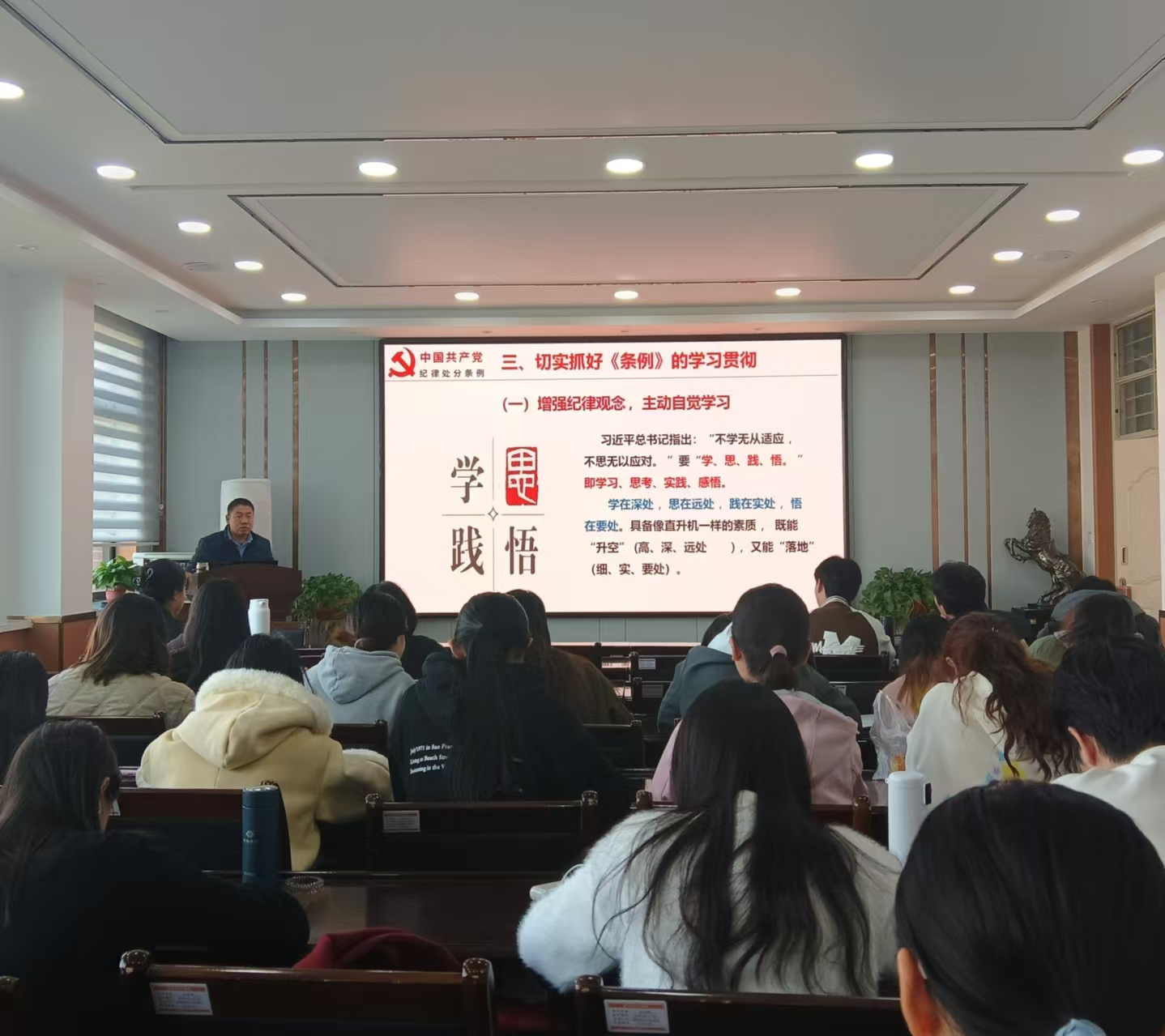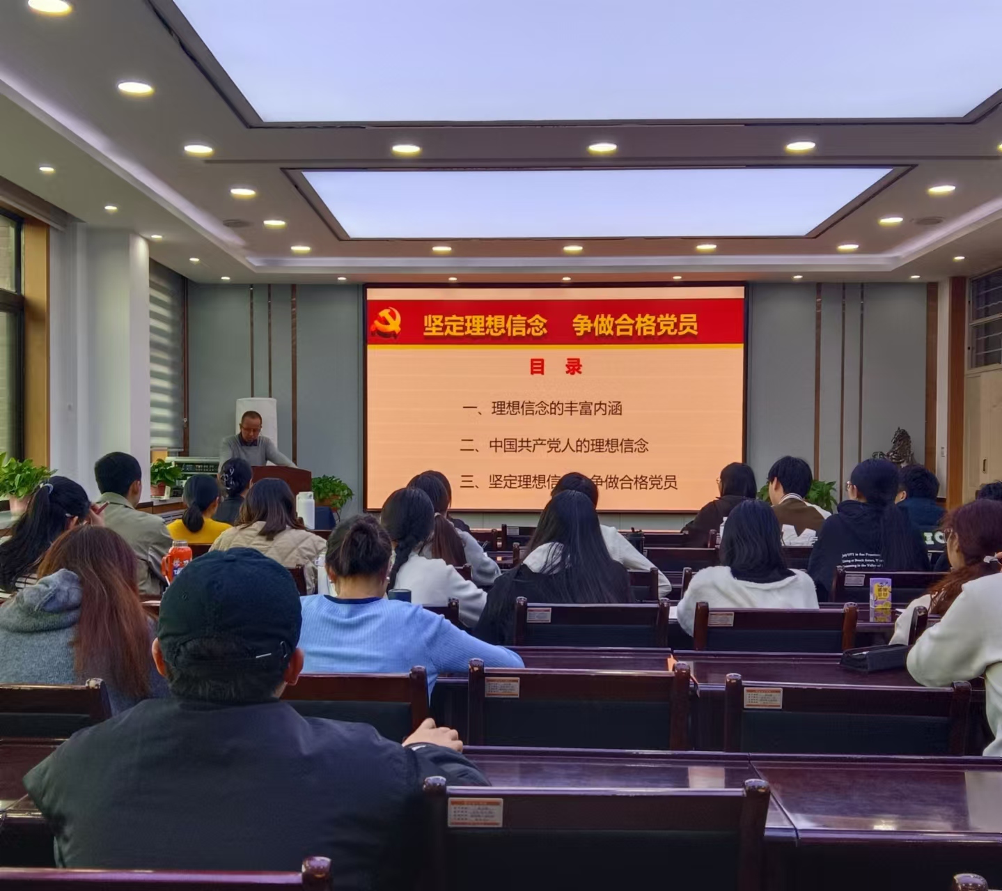 学院党委邀请6名政治理论专家,与学院党委书记、学院党委宣传委员一起,共开展了8场专题讲座。讲座围绕“党员的义务和权力”、“党的二十届三中全会精神学习”、“家国情怀 国际视野”、“学习百年党史 弘扬伟大精神 争做新时代的四有好青年”、“以严明的纪律推进全面从严治党向纵深发展——《中国共产党纪律处分条例》解读”、“铸牢中华民族共同体意识”、“坚定理想信念 争做合格党员”、“中国共产党人的世界观”等主题开展,引导发展对象进一步坚定理想信念,端正入党动机,明确入党意义。