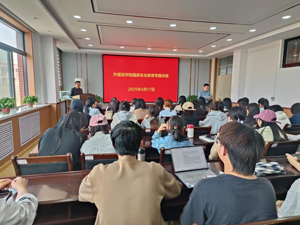 为深入学习贯彻习近平新时代中国特色社会主义思想,提升学院广大党员总体国家安全观意识,引导党员主动维护国家安全,维护社会和校园稳定,4月17日,学院党委在411学术厅开展2025年全民国家安全教育专题讲座。外国语学院师生党员和学生代表总计100余人参加此次专题讲座。讲座由学院党委书记姚斌主持。