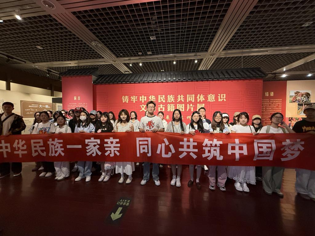 同学们详细参观了“铸牢中华民族共同体意识文物古籍照片展”。该展览以“铸牢中华民族共同体意识”为主线,分为“大一统——中华文明延续不断的历史基因”“大交融——中华民族凝聚不散的历史密码”“大团结——中华民族走向复兴的根本保证”三大篇章。展览通过数百件文物古籍的图文资料,生动追溯了中华文明追求统一、兼收并蓄的精神特质,深刻揭示了各民族在开拓疆域、缔造国家、书写历史、创造文化中形成的命运共同体,全方位呈现了中华民族多元一体的格局,让同学们深入了解了中华民族交往交流交融的历史脉络。