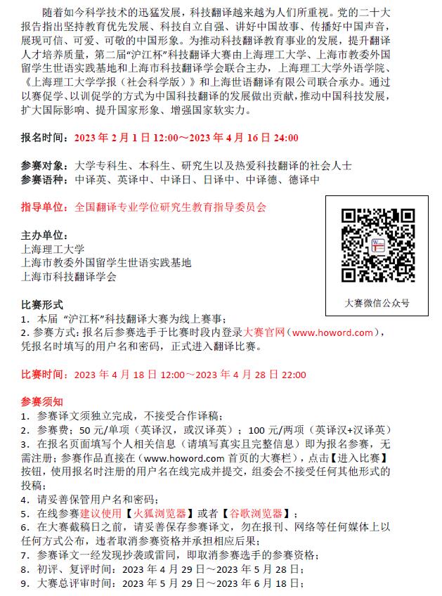 第二届“沪江杯”全国科技翻译大赛通知